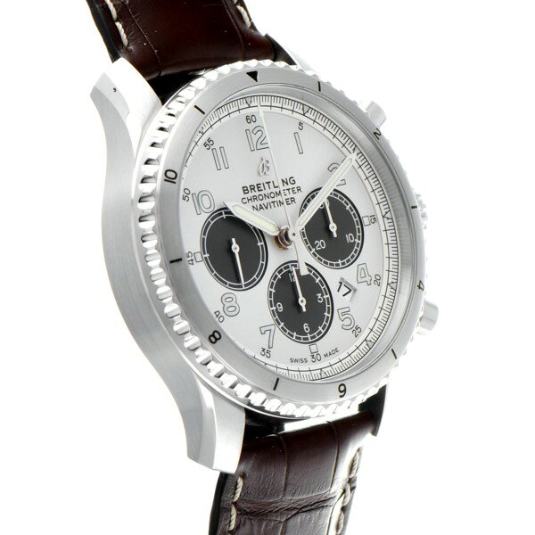 商品詳細【ジャンル】腕時計 / watch メンズ【ブランド】ブライトリング / Breitling【商品名】ナビタイマー アビエーター 8 B01 クロノグラフ 43【型番】AB01171A1G1P1【素材】ステンレス【文字盤】シルバー/グレー【べゼル】ステンレス【ベルト】レザー/ブラウン【ムーブメント】自動巻き(Cal.ブライトリング01)【ランク】AB【状態】・小傷や僅かな打ち傷が見受けられます・ベルトに若干の使用感が見受けられます・風防や文字盤に肉眼で目立つダメージはございません・ムーブメント点検済み(2020年6月オーバーホール)【サイズ】ベルト長さ/約16.0-19.0cm(6段階調節)ケース 縦/約43mm 横/約43mm【備考】100m防水 デイト表示 クロノグラフ サファイヤクリスタル風防 回転ベゼル シースルーバック【付属品】メーカー保証書(2018年8月国内購入) メーカー箱 冊子 クロノメーター証明書【コメント】・パワーリザーブ約70時間ランク状態について商品の状態は、下記のランクで評価しています。