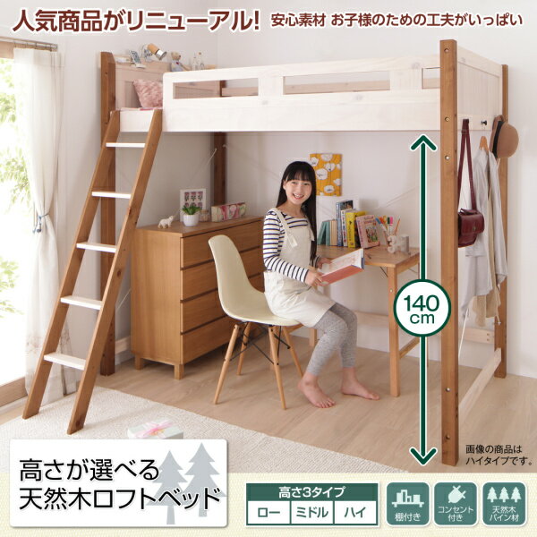 【P5倍★本日12時〜大サービス!】高さが選べる天然木ロフトベッド ベッドフレームのみ ハイタイプ