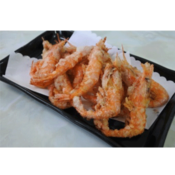 唐揚げの衣は澱粉粉のみですので甘えびの素材が味わえる商品です。