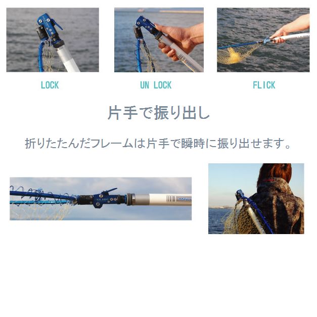 ネット使用時にはワンタッチでロック解除し、瞬時に振り出すことができます。