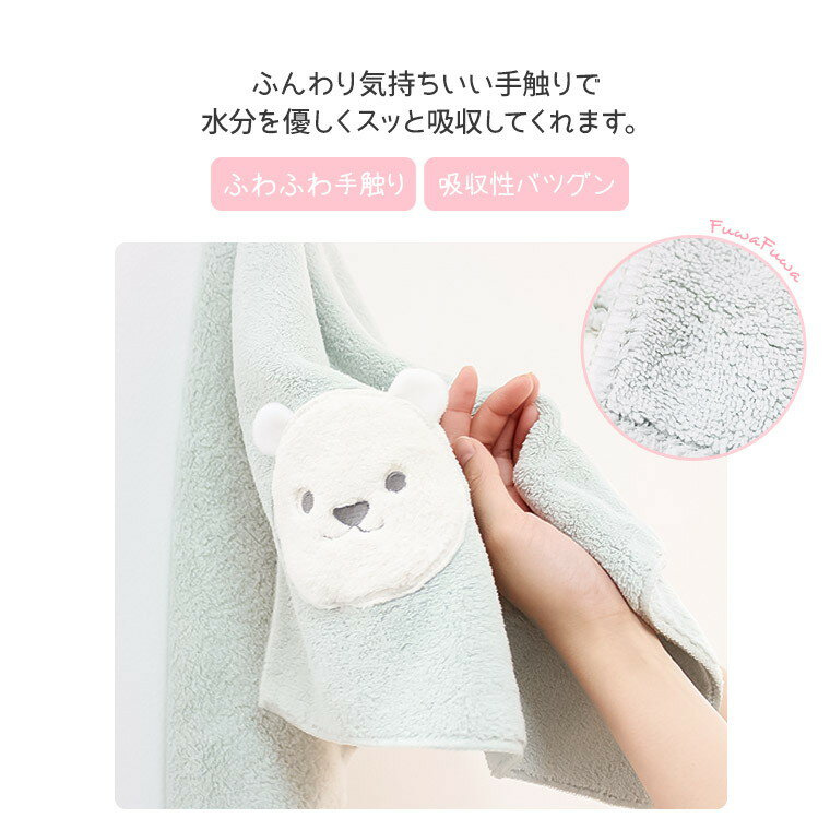 ふんわりと空気を包むようなやわらかな生地を使用し、ふわふわ手触り&吸収性バツグン! 豊富なバリーエーションからあなた好みのアニマルが選べます! ふんわり気持ちいい手触りで水分を優しくスッと吸収してくれます。
